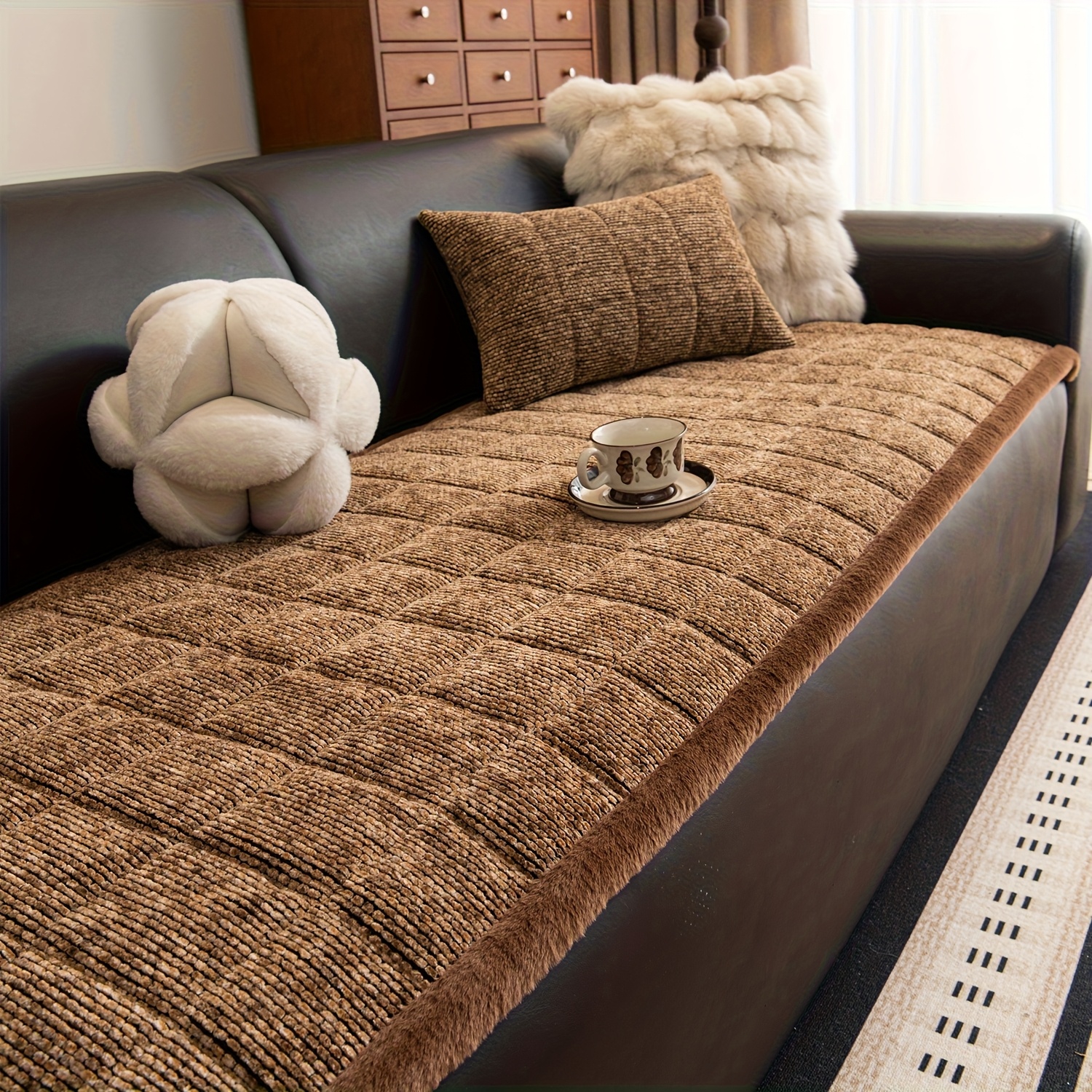 1pc Retro Plaid Thick Chenille Sofa Cushion, Multi-color Optional, Non-slip, Wear-resistant, Skin-friendly And Breathable, to Create A Retro High-end Comfortable Corner for The Living Room